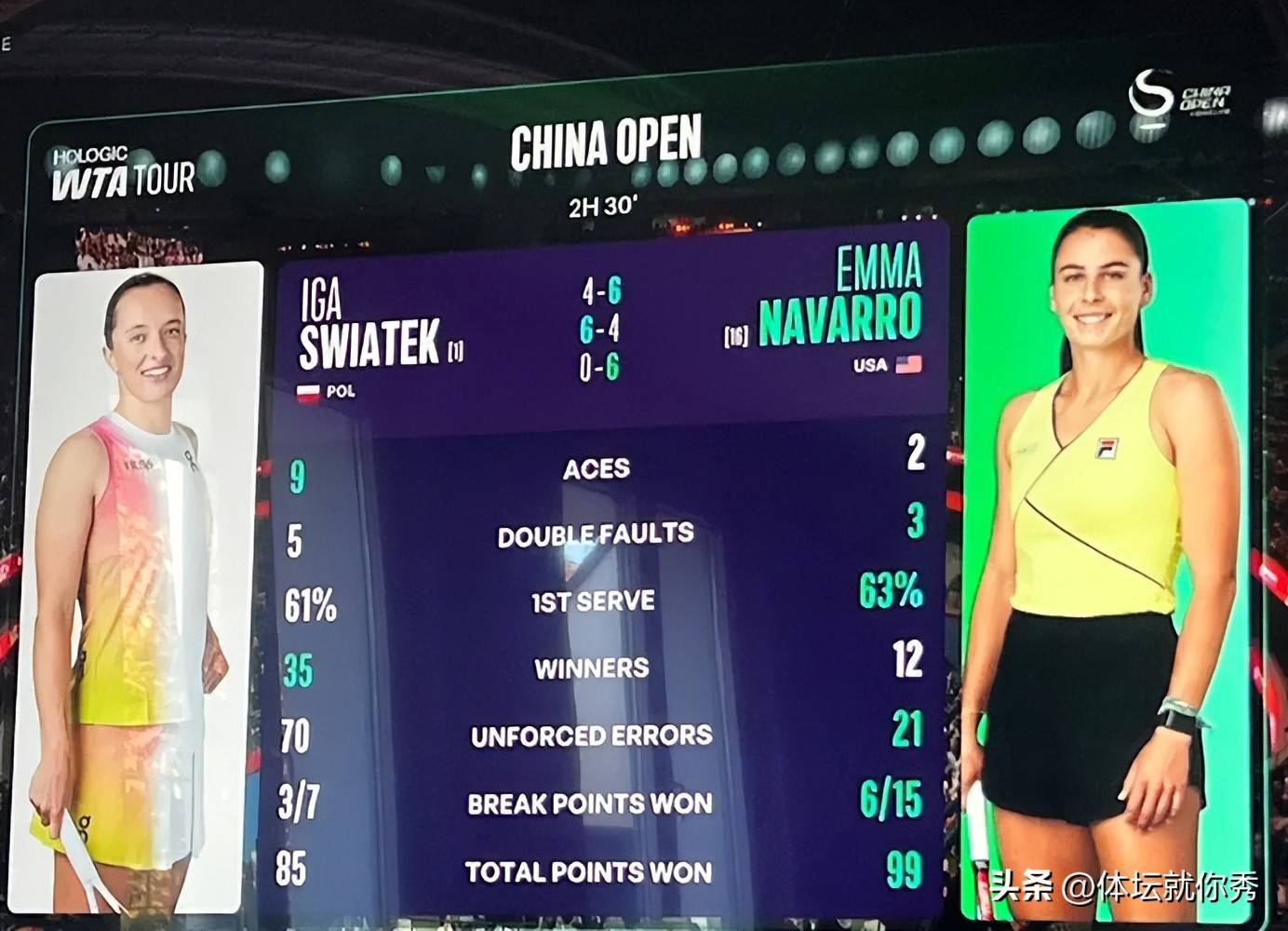 而当晚进行的另一场焦点之战,赛会头号种子、世界第一伊加·斯维亚特克与新生代实力派选手科科·高夫的较量,更是上演了超级大冷门。尽管在稍早前的首尔站斩获冠军,展现出强劲的复苏势头,但转战北京的斯维亚特克,在面对高夫时却未能发挥出应有的水准。