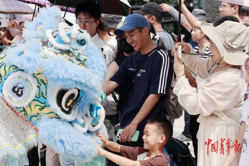 9月29日,北京水立方艺术空间,“浪潮・青年——2025全国高等美术院校青年艺术作品展”现场,参观者在仔细研究、讨论四川美术学院毕业生李颖慧的作品《鎏金纪・残荷谱》的绘画工艺。本次展览,是对高等艺术教育成果的集中展示。展览分为“潮起溯源·文脉的当代表达”“无界漩涌·多元媒介的共生激荡”“涟漪绘境·数字艺术的沉浸体验”三大板块,近千件青年艺术作品分别在鸟巢、水立方场馆展出。中青报·中青网记者 程璨/摄