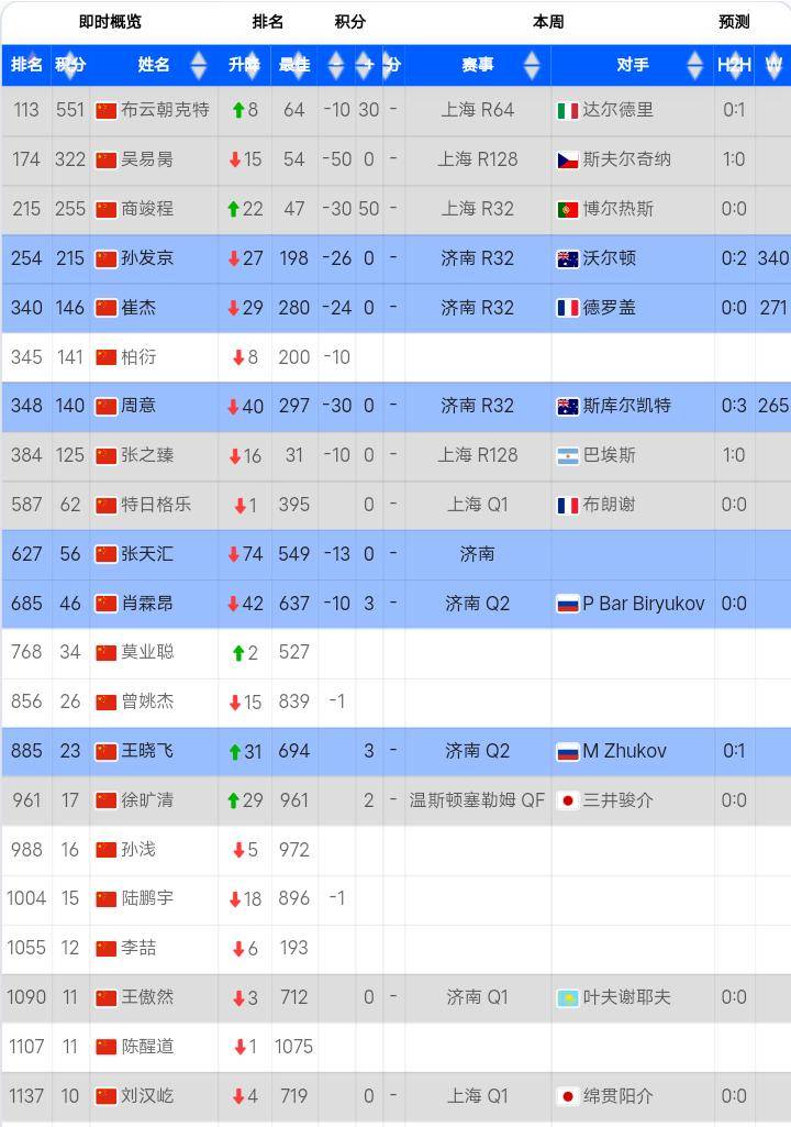 遗憾的是,王雅繁在资格赛首轮与森梅兹的对决中遭遇逆转。尽管她在第一盘0-4落后的情况下连扳六局拿下,但在第二盘4-3领先时,最终以4-6丢掉了比赛,并在决胜盘再次遭遇逆转,以6-4/4-6/6-4止步资格赛。她的世界排名因此下滑了16位,来到第352位。王曦雨也未能通过资格赛,最终排名上升7位,达到了第145位。