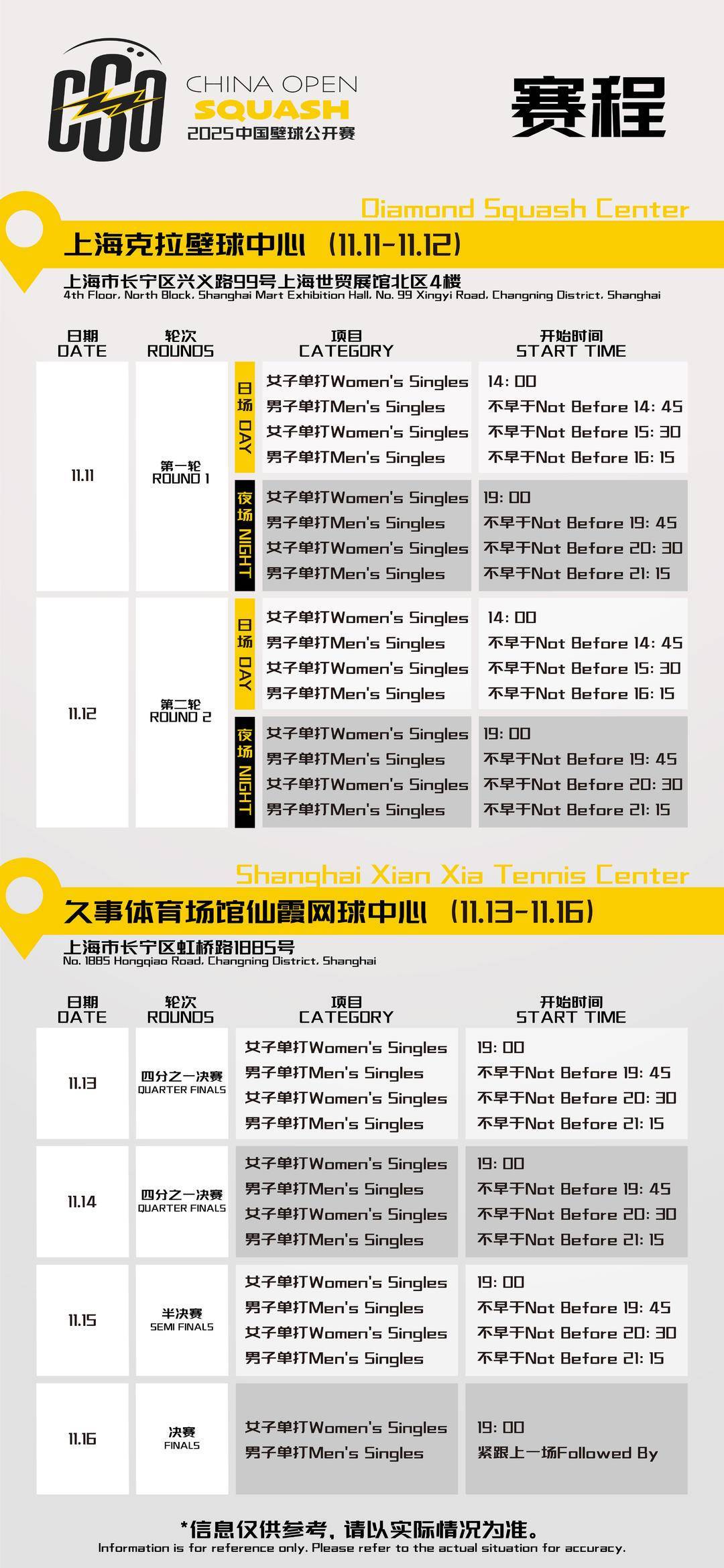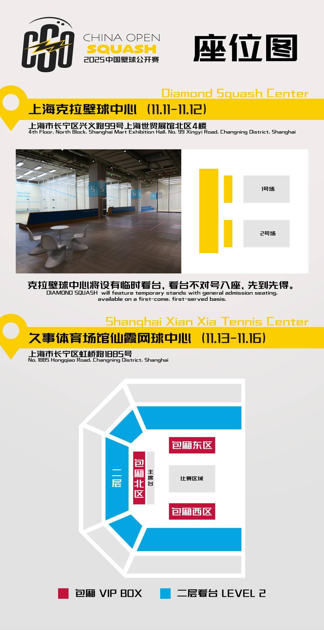 前两轮比赛实行日、夜场分场售票,票价设置更为亲民,最低120元即可满足不同人群的观赛需求;11月13日至16日则为单日通票,开设包厢区域及二层看台供球迷选择。