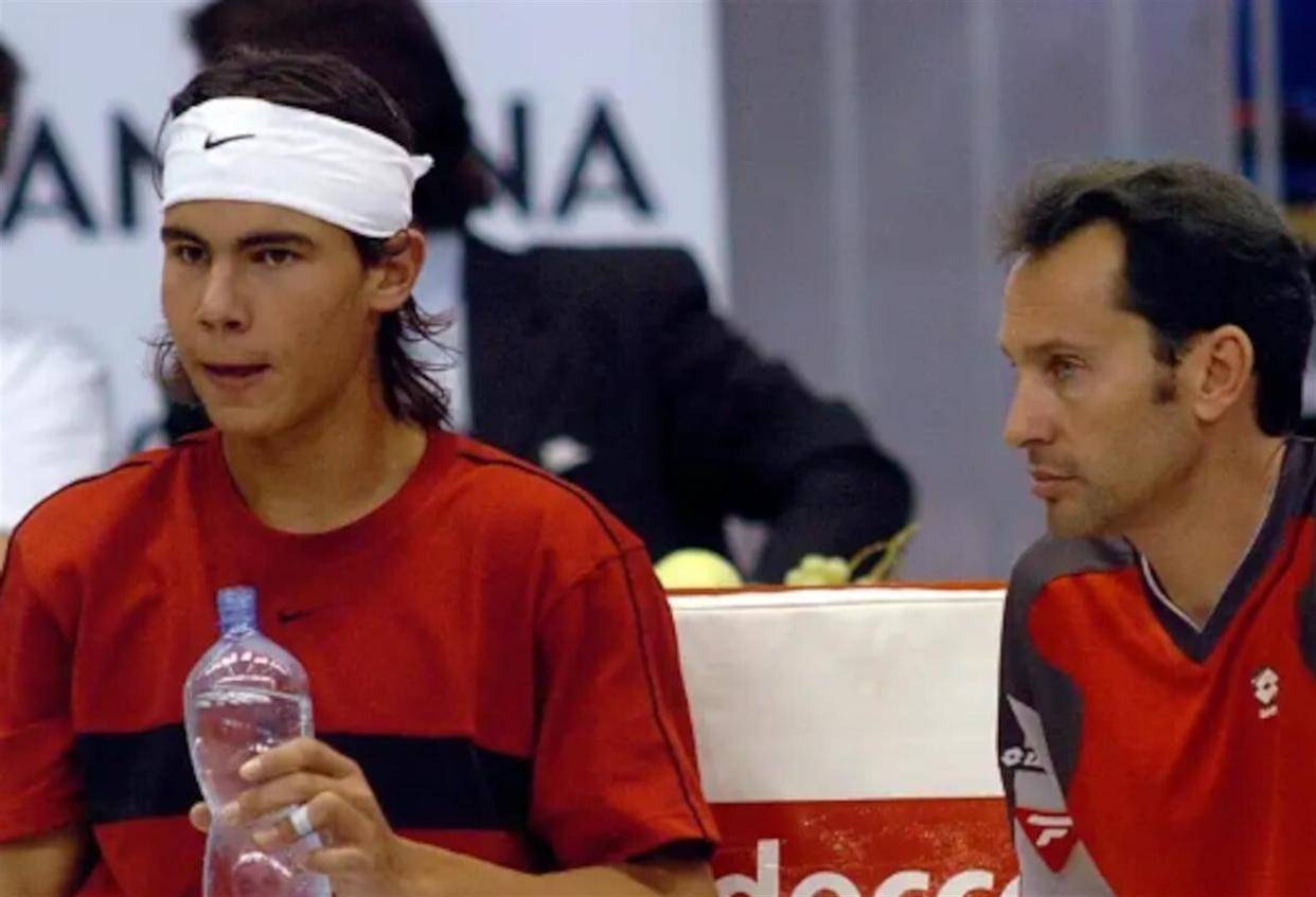 正是在这样的背景下,新教练约尔迪·阿雷斯进入了公众视野。 这位61岁的西班牙网球名宿,球员时期战绩显赫。 1996年亚特兰大奥运会,他在男单比赛中一路过关斩将,最终摘得银牌。 作为红土专家,阿雷斯对网球技战术有着深刻的理解。 退役后他担任过解说员,2004年还曾担任西班牙戴维斯杯的队长。 那一年他带领的队伍里,有一个17岁的少年名叫拉斐尔·纳达尔。 阿雷斯见证了纳达尔在戴维斯杯的初露锋芒,也陪伴了西班牙网球黄金一代的成长。 队里面除了当时还在玩泥巴的阿尔卡拉斯,西班牙网球的传奇球员几乎都聚齐了。