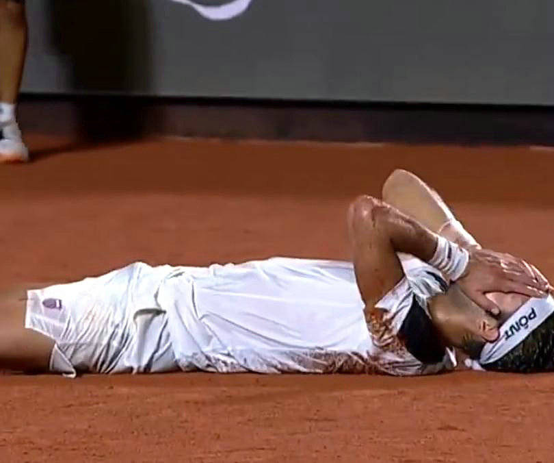 最后来猜一猜认一认。下面这张图片是一位球员获胜之后倒地庆祝。不作提示,您能认出他是谁吗?